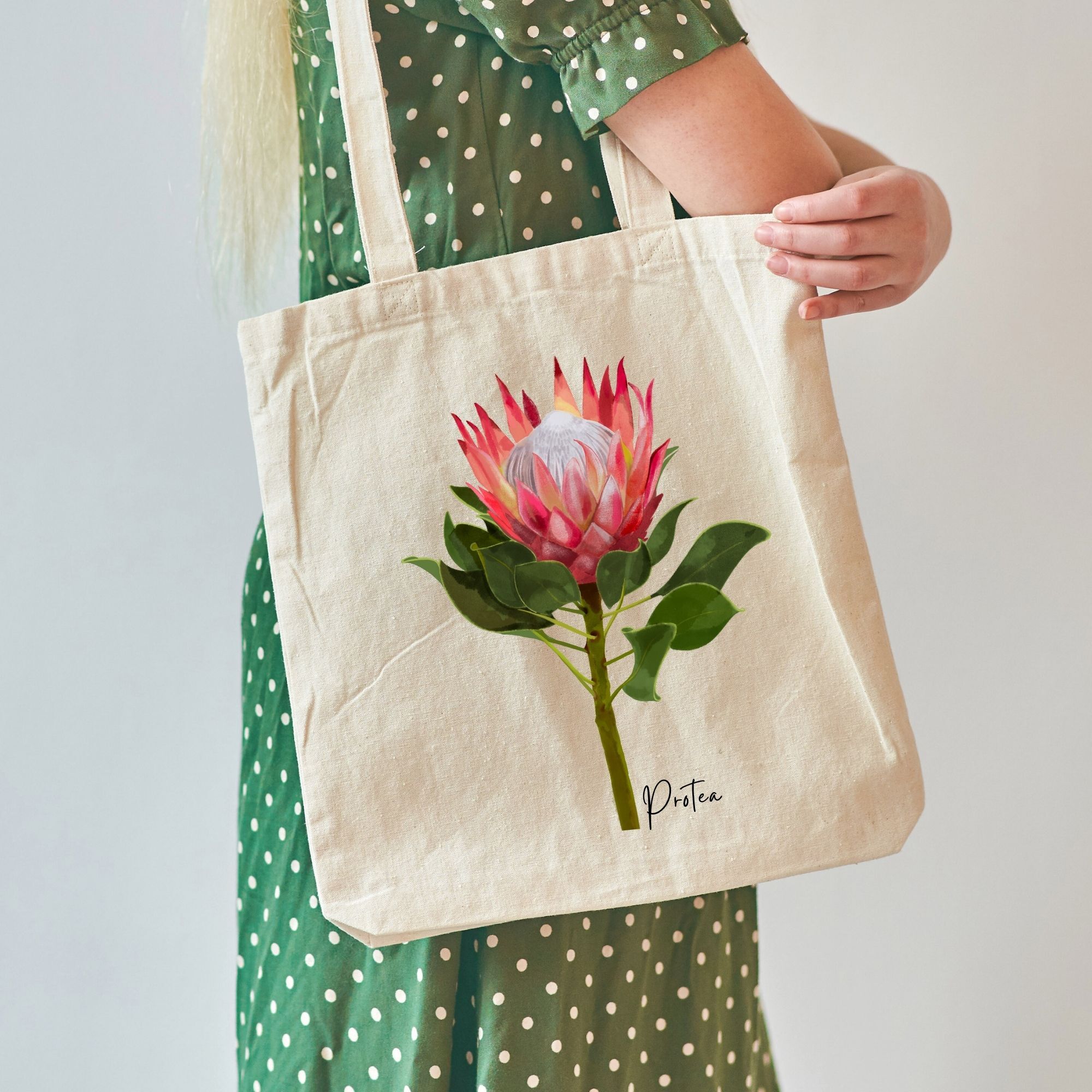 Our beautiful range of Native Australian Flora and Fauna cotton tote bag are designed in Australia. This beautiful colorful reddish pink Protea flower is highlighted on the beige cotton tote bag, which makes the floral print stands out. It is a high quality cotton tote bag which is versatile and durable bag, and come in a specially designed* packaging for easy sending and it makes the perfect gift for that someone special. Check out our other design ranges. *It has information about the flower.