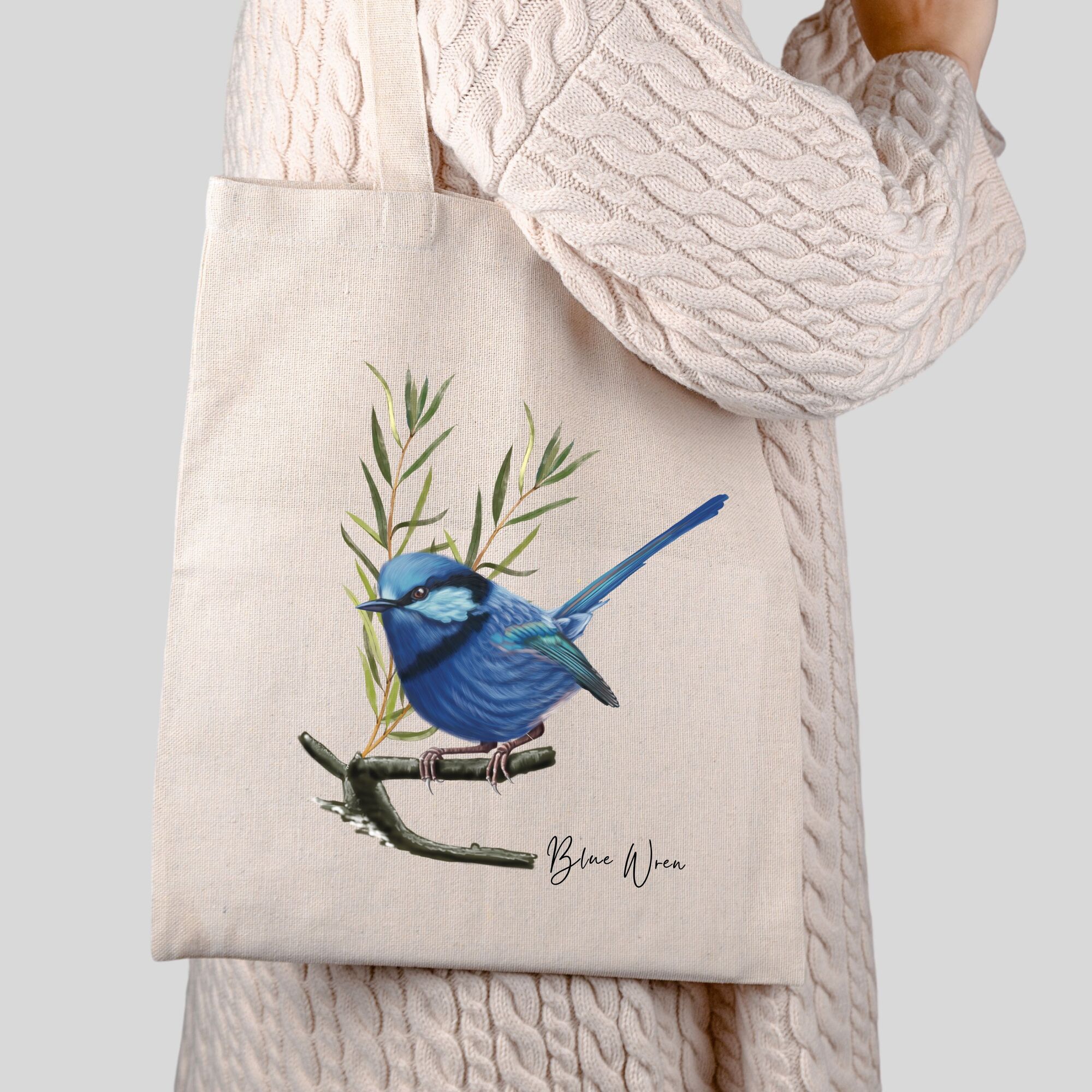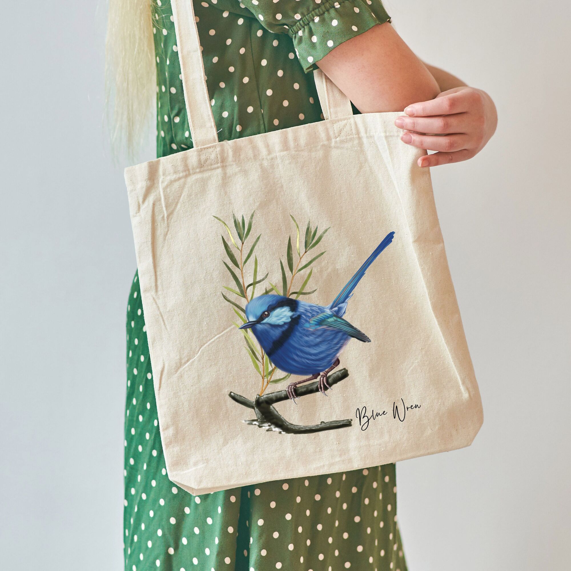 Our beautiful range of Native Australian Flora and Fauna cotton tote bag are designed in Australia. This beautifully illustrated Fairy Blue Wren bird is highlighted on the beige cotton tote bag, which makes the bird print stands out. It is a high quality cotton tote bag which is versatile and durable bag, and come in a specially designed* packaging for easy sending and it makes the perfect gift for that someone special. Check out our other design ranges. *It has information about the bird.