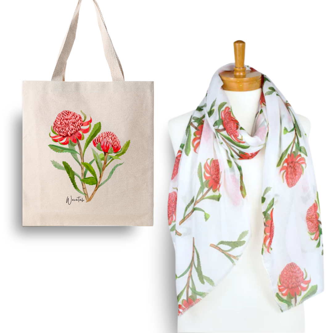 Celebrate Australia’s Iconic Beauty with the Waratah Tote Bag & Scarf Set
