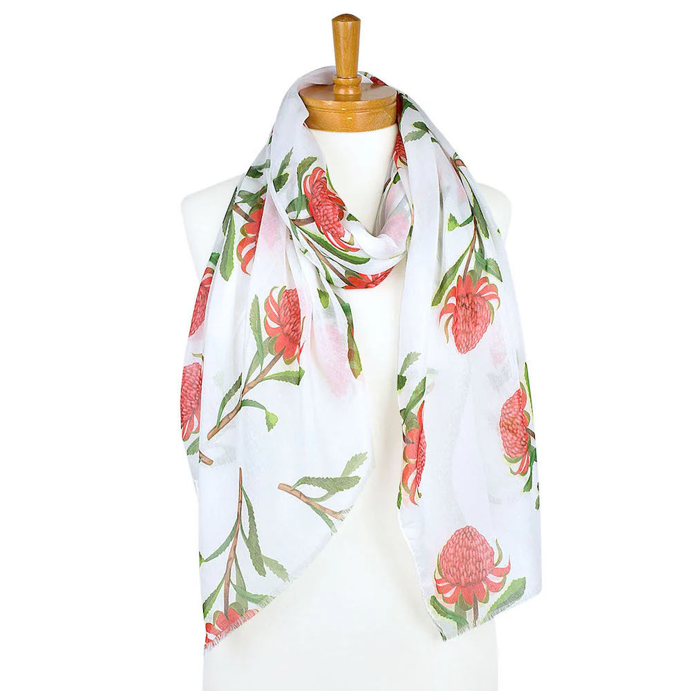 Check out the individual products: Waratah Flower White Scarf & Waratah Cotton Tote Bag.