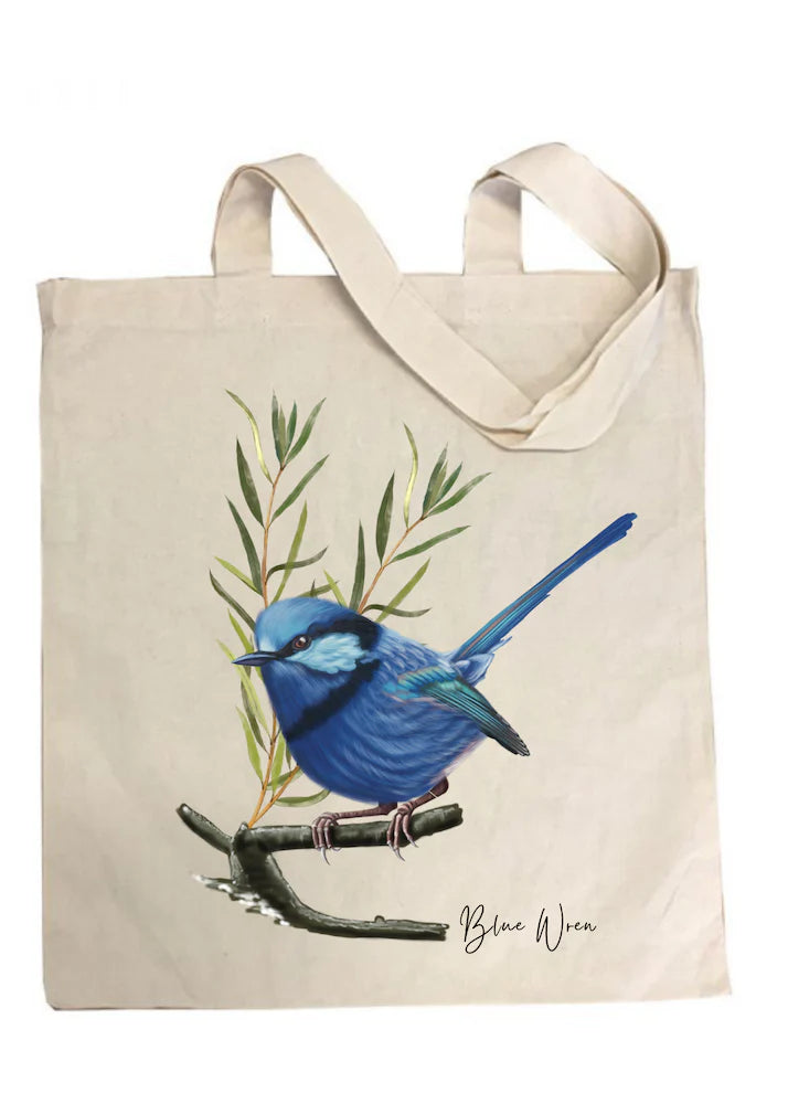 Check out the individual products: Blue Wren White Scarf & Blue Wren Cotton Tote Bag.