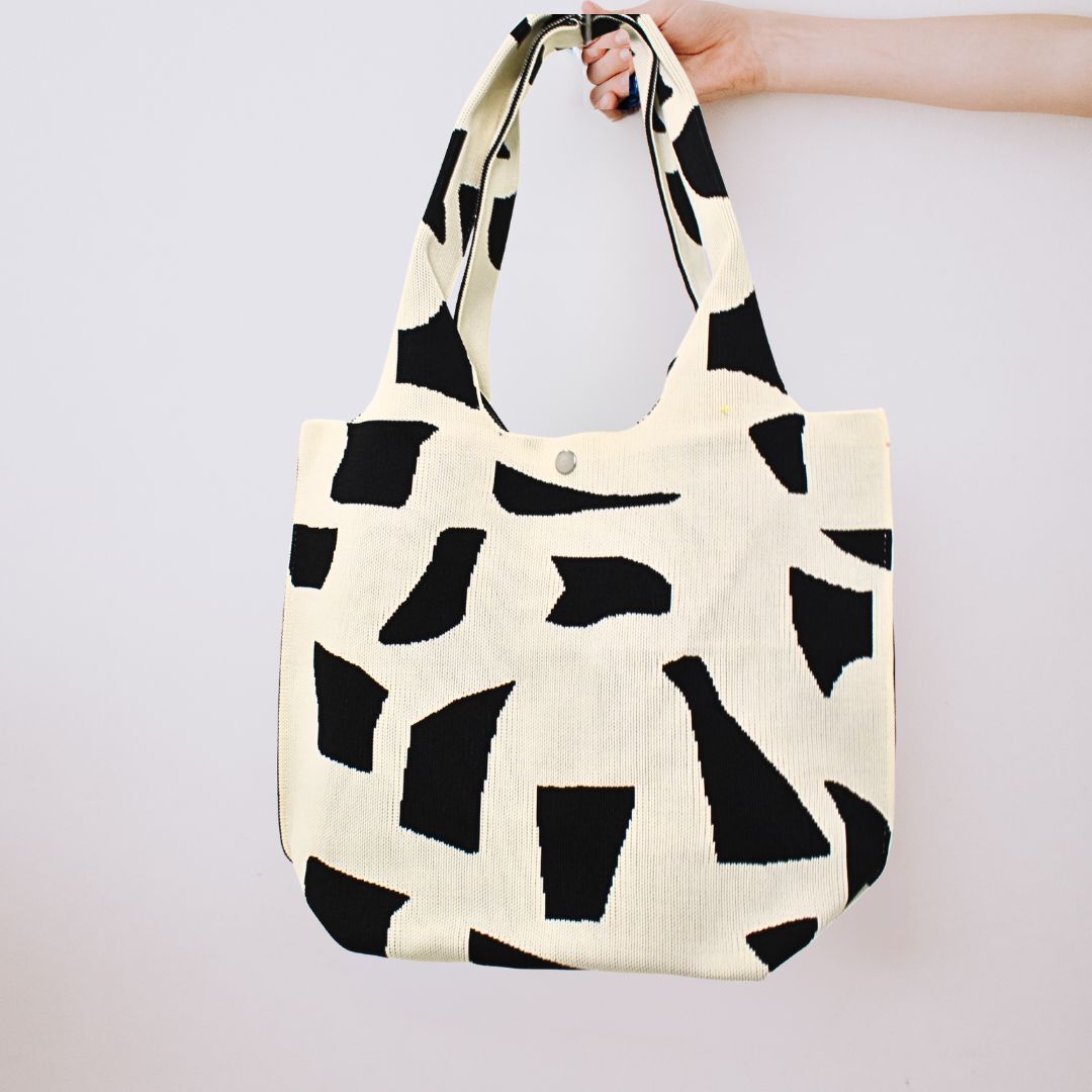 THSB1050: Off White Black: Abstract Tote Bag Elevate your everyday with this chic and functional shoulder bag, designed to blend seamless style with practical utility. Crafted from soft yet durable acrylic, this cream black beauty features a captivating abstract pattern that adds a modern touch to any outfit. Its spacious, unlined main compartment offers ample room for all your essentials, secured by a simple yet effective button closure. Lightweight and effortlessly elegant, this bag is an ideal companion for daily errands, coffee catch-ups, or simply as your reliable everyday bag. Looking for the perfect gift idea for her? This versatile tote makes a wonderful present for birthdays, Christmas, or any occasion, and its lightweight design makes it an excellent choice for posting to loved ones overseas. A truly delightful gift for her! Material: Acrylic Measurement [cm]: Top width 40.5cm, bottom 27cm, height 27cm depth 13cm, handle 23.5cm