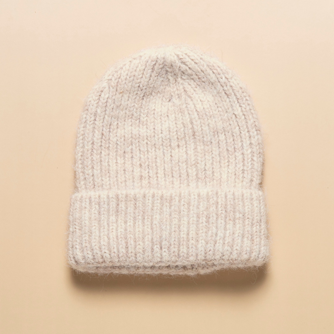 Ribbed Knit Beanie - Soft Oat Keep cosy and stylish with this ribbed knit beanie in a versatile soft oat shade. Featuring a classic ribbed pattern and a cuffed design, this beanie provides a snug fit, warmth, and a timeless look for cold-weather days. Made from soft, high-quality material, it is lightweight yet insulating, perfect for daily wear. This unisex accessory effortlessly complements any outfit, adding a neutral, elegant touch to your winter wardrobe. A must-have essential for staying warm or gifting to someone special. Material: 40% Wool 60% Acrylic Measurement: 22 (H) x 21 (W) cm