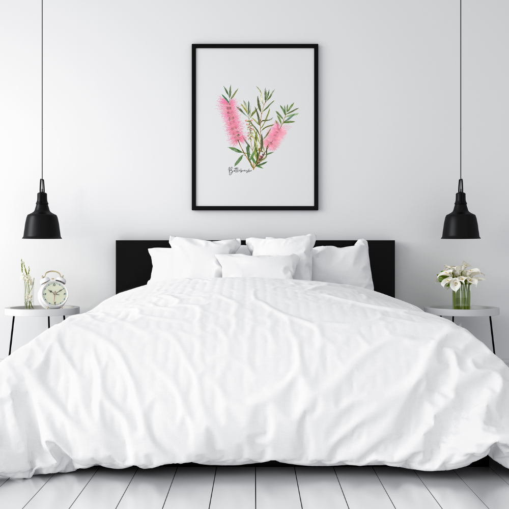 Our beautiful range of Native Australian Flora and Fauna Posters are designed in Australia. This beautiful colorful Pink Bottlebrush flower will brigten up any room, use whatever frame you please and it will highlight the image and make the floral print stand out. Mix and match with other poster designs to create your perfect look. It comes in a specially designed* packaging and it makes the perfect gift for that someone special. Check out our other design ranges. *It has information about the flower. Frames not included.