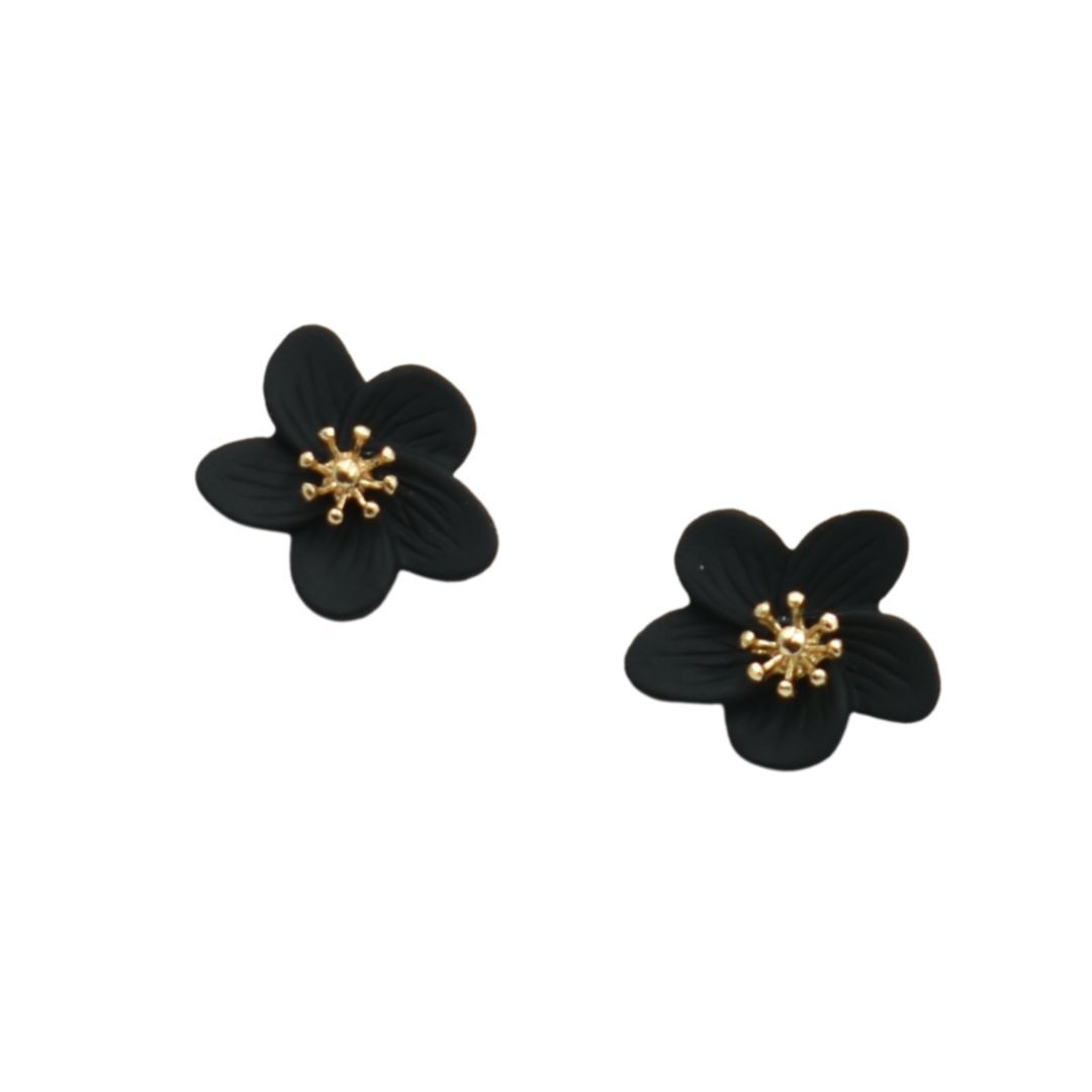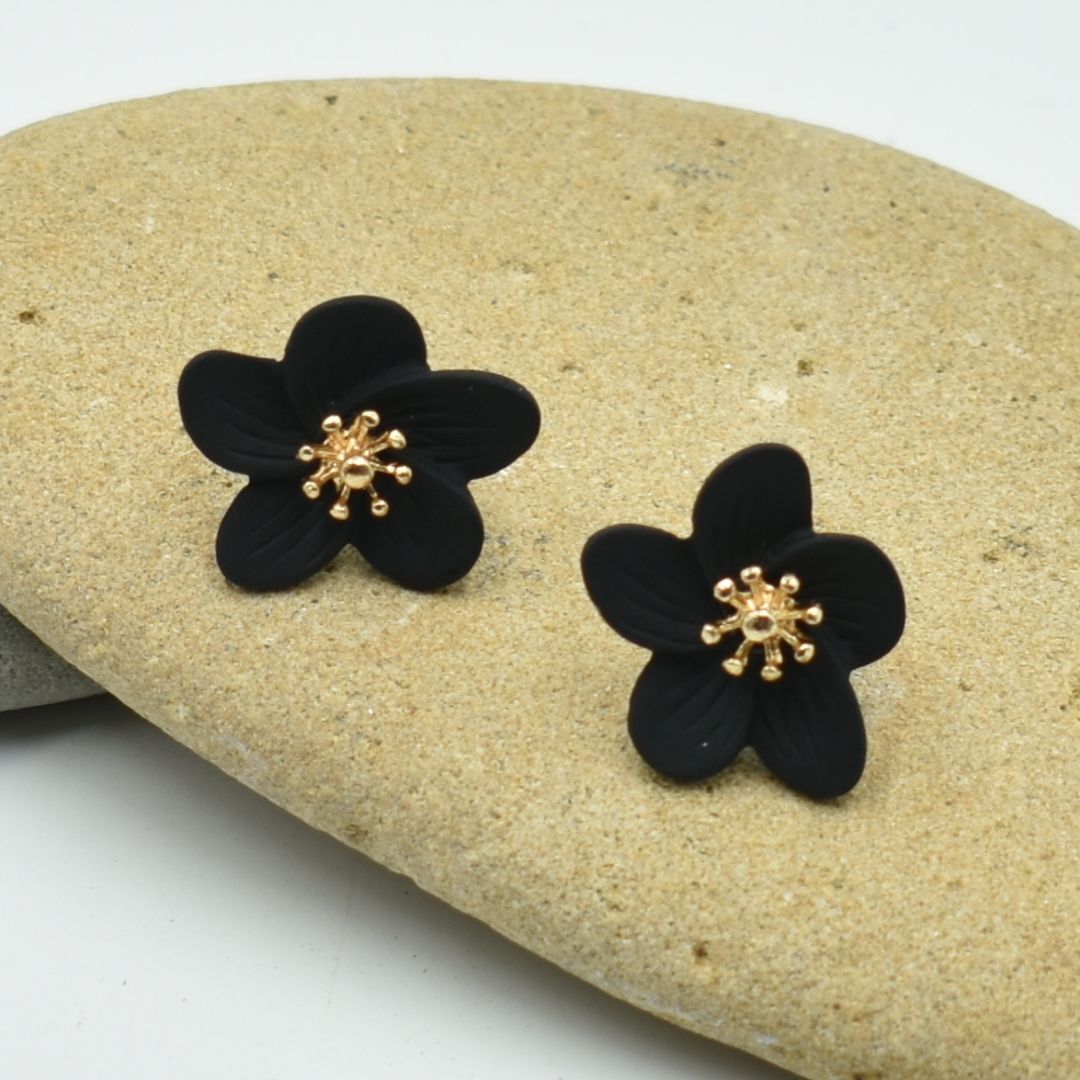THSE1075: Black D Flower Petals Earrings Sophisticated and timeless, the Black Flower Petals Earrings are a stunning statement accessory that adds an elegant edge to any ensemble. Crafted in a graceful drop style, these Earrings feature layered iron petals with a smooth spray-painted black finish, offering a bold yet refined floral silhouette. Lightweight and easy to wear, theyOre designed with stainless steel studs for all-day comfort. Whether itOs a birthday, MotherOs Day, teacher thank-you or farewell gift, these fashion jewellery pieces are a thoughtful gift for her. Their featherlight design also makes them perfect for posting overseas N a stylish surprise from afar. Material: Spray Painted Iron + Stainless Steel Stud Measurement: 2cm x 2cm