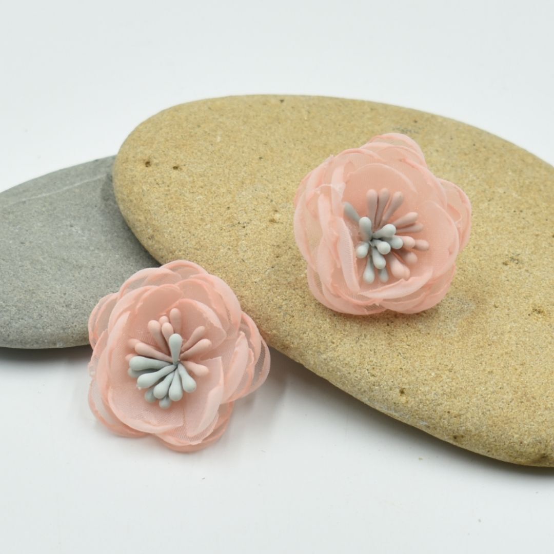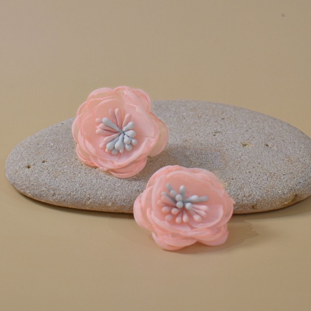 THSE1088: Melon D Organza Flower Earrings Bright and breezy, the Melon Organza Flower Earrings are a delightful statement accessory that brings a playful elegance to your look, and a key highlight for your Spring Summer style. Featuring delicate organza petals in a warm melon hue, these stud-style earrings radiate charm and femininity. Their ultra-lightweight design and comfortable stainless steel studs make them perfect for day-to-night wear without fuss. Whether you're celebrating a birthday, MotherOs Day, or sending a thoughtful teacher thank-you or farewell gift, these lightweight earrings are a beautiful gift for her. A vibrant piece of fashion jewellery, easy to post and sure to be adored. Please note: As these items are handmade, there may be slight imperfections and inconsistencies, which contribute to their unique beauty. No two are exactly alike. They are not considered faults. Material: Stainless Steel Stud+Cloth Colour: Melon Measurement: 3cm x 3cm