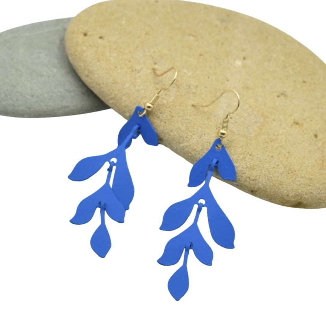 • Load image into Gallery viewer, THSE1090: Navy: Leaf Drop Earrings