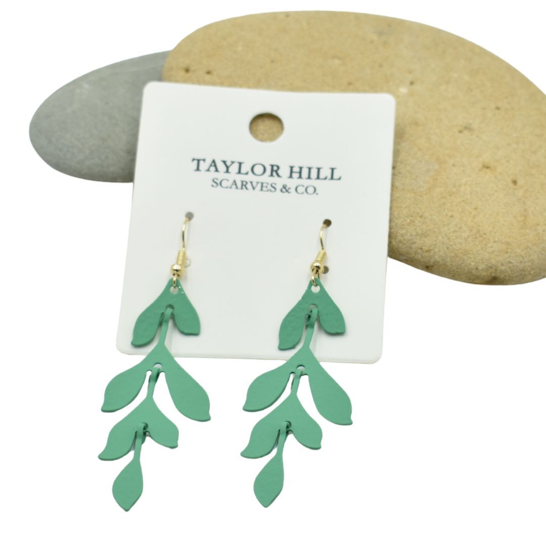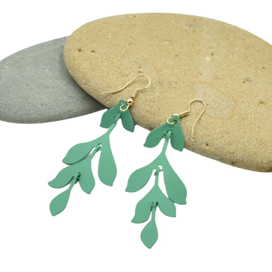• Load image into Gallery viewer, THSE1092: Green: Leaf Drop Earrings