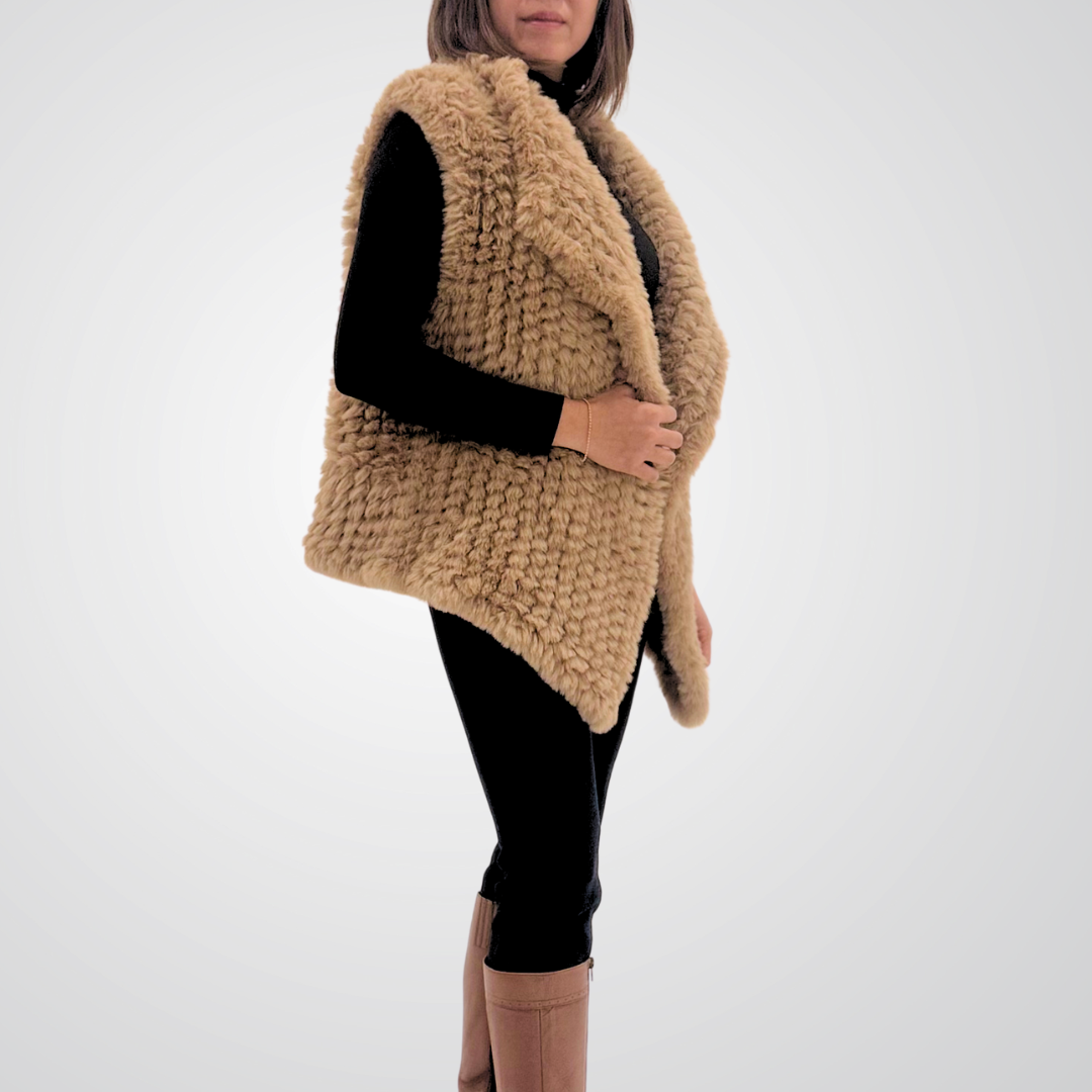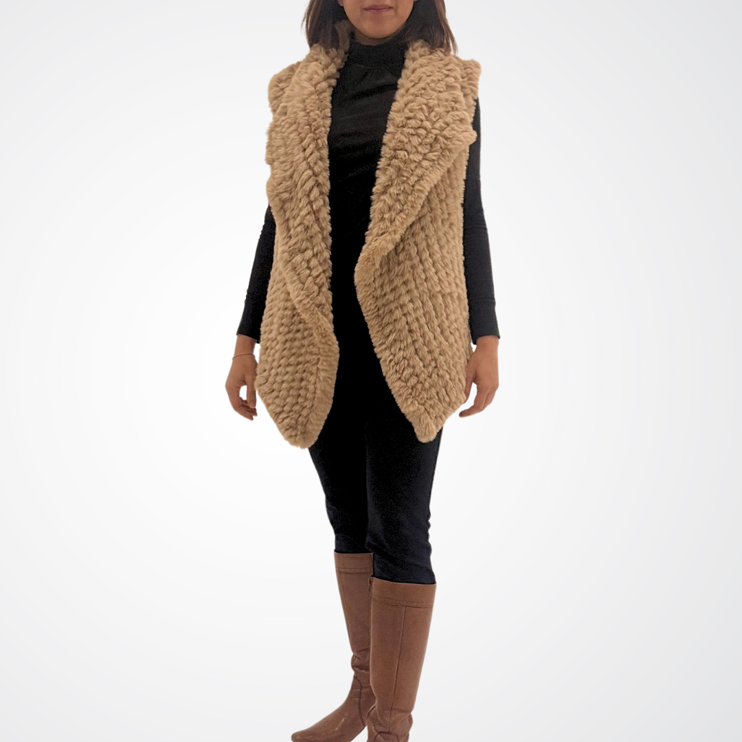 Plush Faux Fur Vest - Camel Indulge in cosy elegance with this plush faux fur vest in a rich warm camel tone. Made from soft, high-quality polyester, this vest features a luxurious faux fur texture that adds sophistication to any outfit. The secure hook closure offers both comfort and convenience, making it perfect for layering over winter ensembles. Stylish and versatile, this vest effortlessly complements casual and dressy looks, making it a must-have for cooler days and seasonal wardrobes. Material: 100% Polyester Measurement: One size fits most