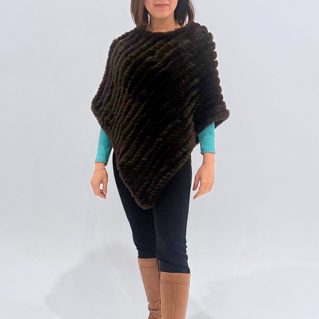 Plush Faux Fur Poncho - Brown Wrap yourself in luxury with this faux fur poncho in a stunning rich chocolate brown shade. Made from ultra-soft polyester, this poncho features a plush, textured design for ultimate warmth and comfort. Its relaxed fit effortlessly drapes over your outfit, adding a sophisticated and cosy touch to your cold-weather wardrobe. Perfect for layering over casual or dressy looks, this versatile poncho is ideal for staying stylish on chilly days or gifting to someone special.