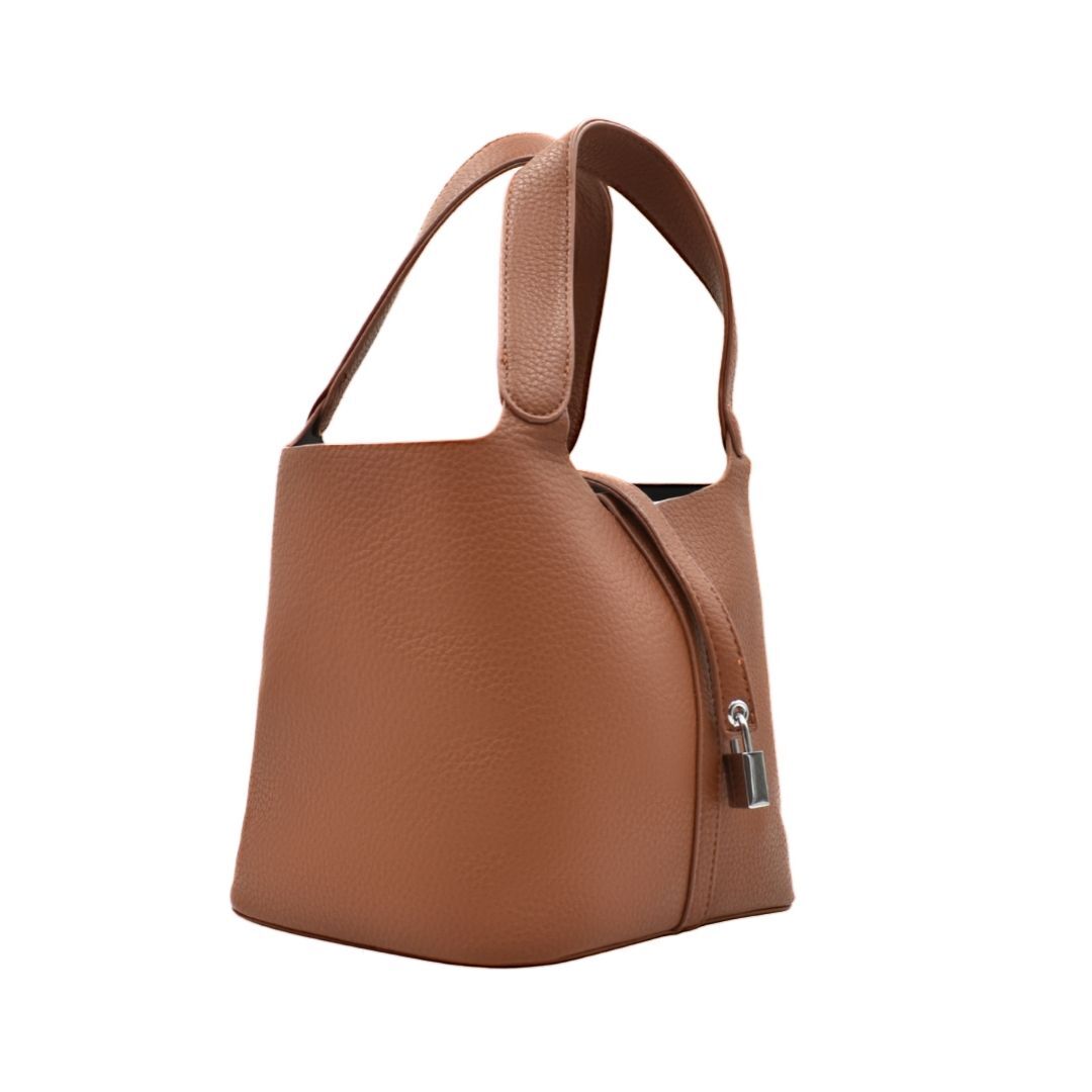 THSB1040: Tan Brown: Lockette Tote Bag Timeless and versatile, the Lockette Tote Bag in Tan Brown is the ultimate tote for the modern woman. Crafted from soft PU, itOs lightweight yet structured with a built-in ziplock pouch Nperfect for everyday use or travel. The rich brown shade adds warmth and elegance, while its adjustable strap lets you wear it long or short to suit your look. Foldable and compact, it's easy to carry or send overseas, making it a thoughtful gift-ready accessory for birthdays, thank-you gestures, or MotherOs Day. Whether youOre browsing weekend markets, running errands, or heading out for lunch, this lightweight reusable bag keeps essentials close and style effortless. Finished with a sleek lock detail, itOs a stylish gift for her that works in every season. Material: Outside: Soft PU Leather Inside: Polyester Measurement [cm]: Top width 28cm, bottom 19cm, height 18cm depth 16cm, handle 15m