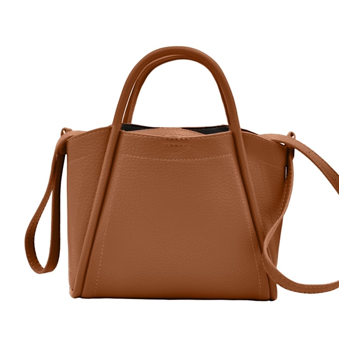 THSB1046: Brown D Pearl Tote Bag Classic charm meets everyday convenience with the Pearl Tote Bag in warm brown. Made from soft PU, this womenOs crossbody bag offers a polished silhouette with a spacious interior including a ziplock pouch inside, and secured by a magnetic button. Its versatile design features sturdy top handles and a long adjustable strap, allowing you to wear it as a shoulder or everyday crossbody bag. A delicate heart pendant adds a graceful finishing touch, while its structured shape makes it perfect for daily essentials. Whether you're shopping for a thoughtful gift for her, a gift idea for birthdays or Christmas, or looking to send a lightweight item overseas, this PU leather bag is a timeless, practical choice. Material: Outside: Soft PU Leather Inside: Polyester Measurements [cm]: Top width 26.5cm, bottom 22cm, height 17.5cm depth 11cm, handle 11cm
