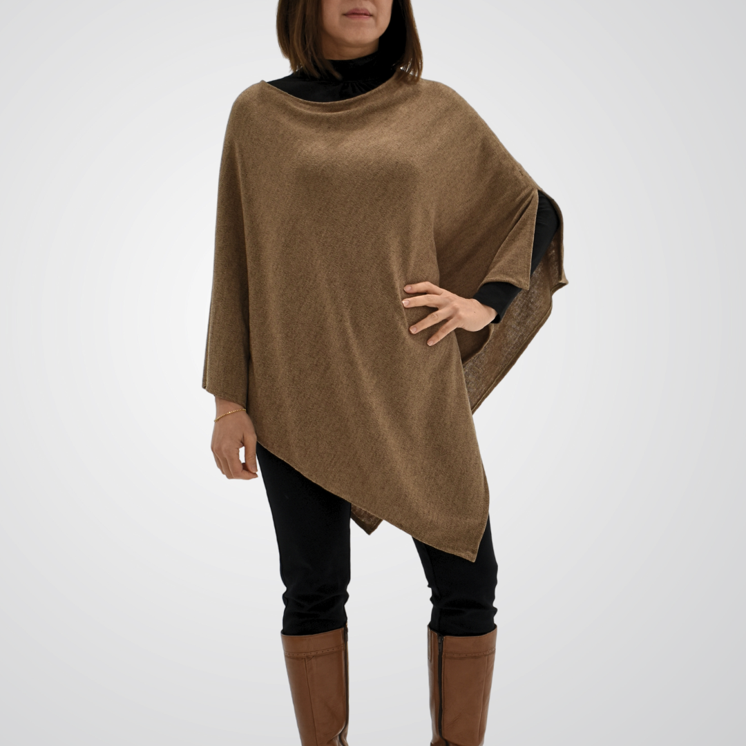 Brown Side-Slit Poncho D Effortless Style and ComfortElevate your everyday wardrobe with the Brown Side-Slit Poncho, a versatile and stylish addition that blends timeless design with modern practicality. This poncho is crafted from ultra-soft, lightweight fabric, providing all-day comfort and a cosy feel perfect for cooler weatherThe subtle side slit design ensures ease of movement, making it ideal for layering over casual or formal outfits. Its warm brown tone offers a neutral, earthy appeal, allowing effortless pairing with jeans, leggings, or dresses for a polished look.Whether youOre running errands, lounging at home, or attending a casual outing, this poncho is your go-to piece for chic and practical styling.Unique Features:Convenient side slit for added flexibility and movementSoft, lightweight material for comfort and warmthNeutral brown hue complements a variety of outfitsOne-size design for a relaxed, flattering fitIdeal for layering during autumn, winter, and spring Size: Left to Right - 100cm x Neck to Bottom -80cm Material: 20% Wool 80% Acrylic