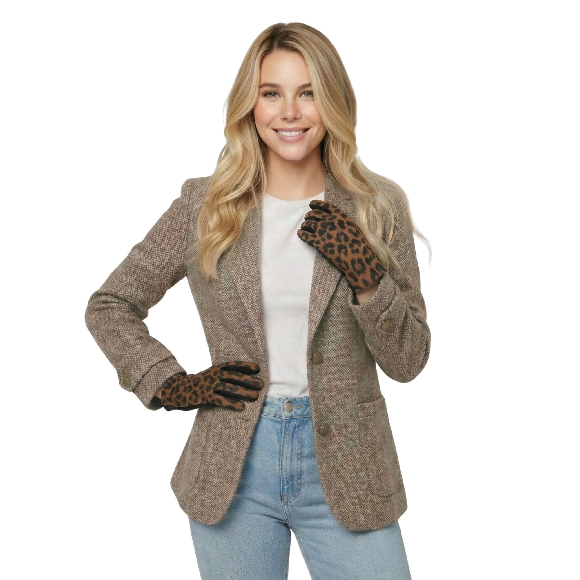 • Load image into Gallery viewer, THSG1145: Camel: Luxe Leopard Gloves