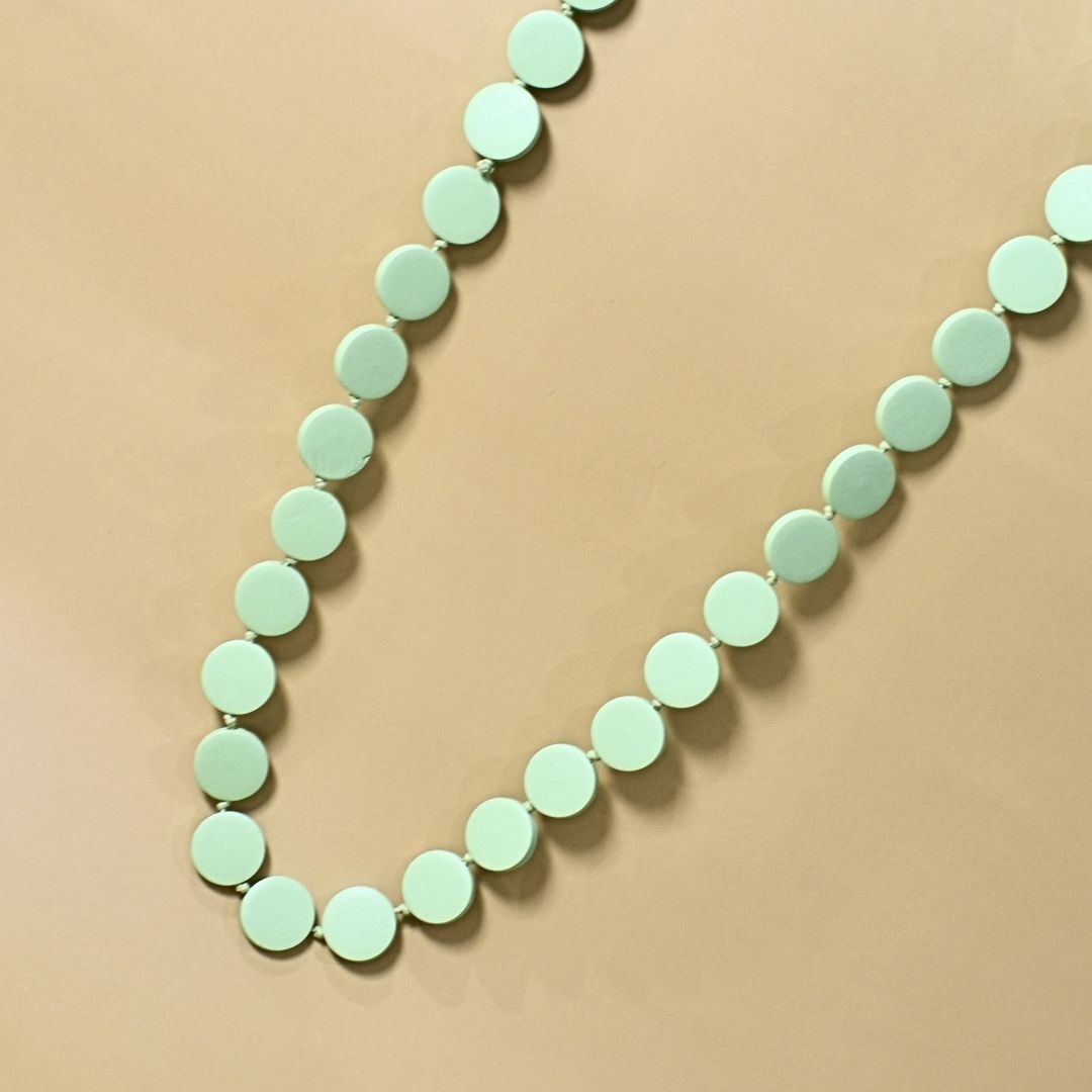 THSJ1272: Mint D Round Wooden Necklace Freshen up your look with the soft, breezy charm of our Mint Round Wooden Necklace. Crafted from lightweight wood, this statement accessory showcases smooth, circular beads in a refreshing mint toneNperfect for adding a touch of serenity and sophistication to your spring and summer wardrobe. Its featherlight feel makes it comfortable for all-day wear, while the soothing pastel hue brings a subtle pop of colour to any outfit. Whether you're gifting it for MotherOs Day, birthdays, or a thoughtful teacher thank-you, this piece makes a memorable gift for herNeasy to post overseas or pack for travel. A versatile addition to any collection of fashion jewellery. Material: Wood + Cord Measurement: Bead Size - 2cm x 2cm - 90 length - circumference
