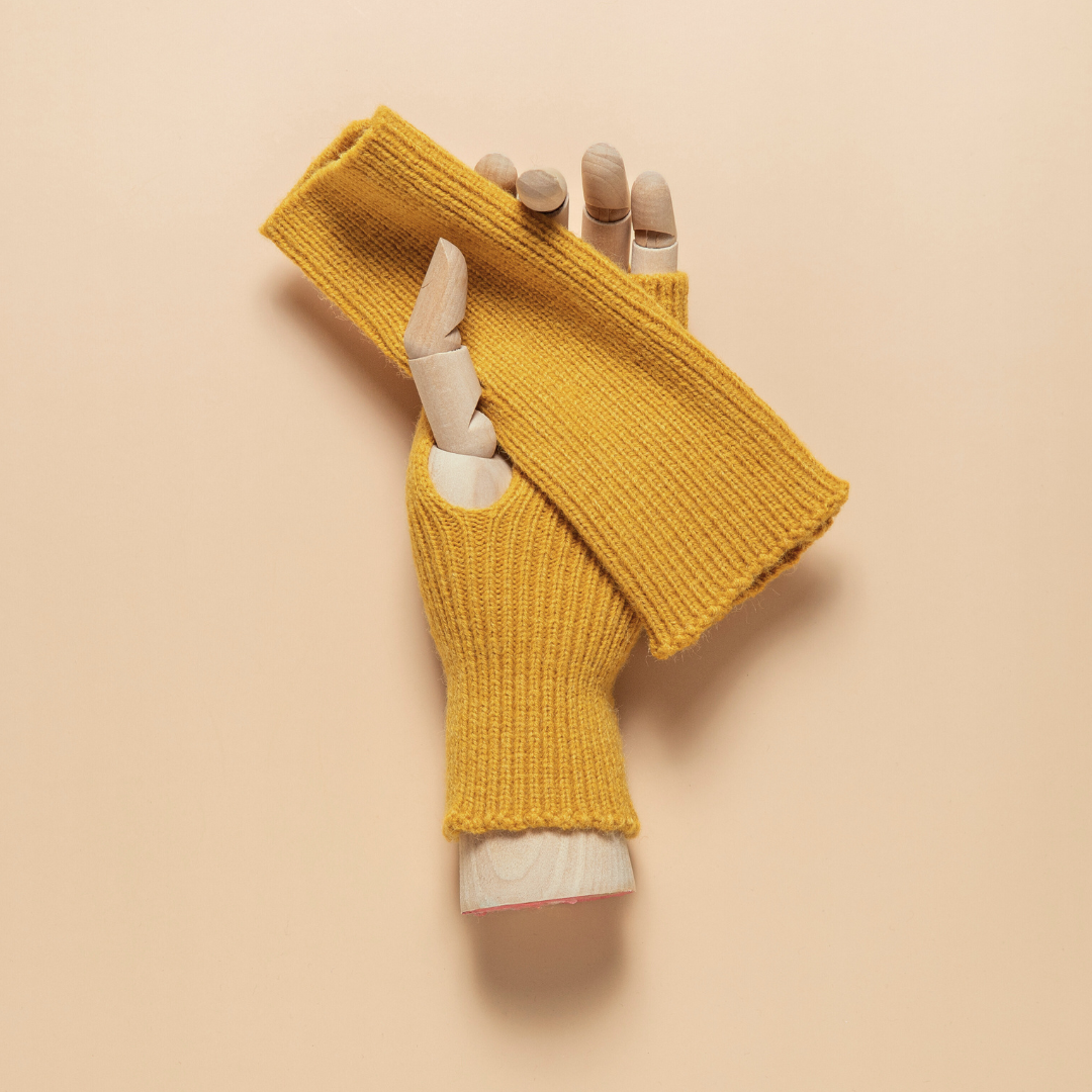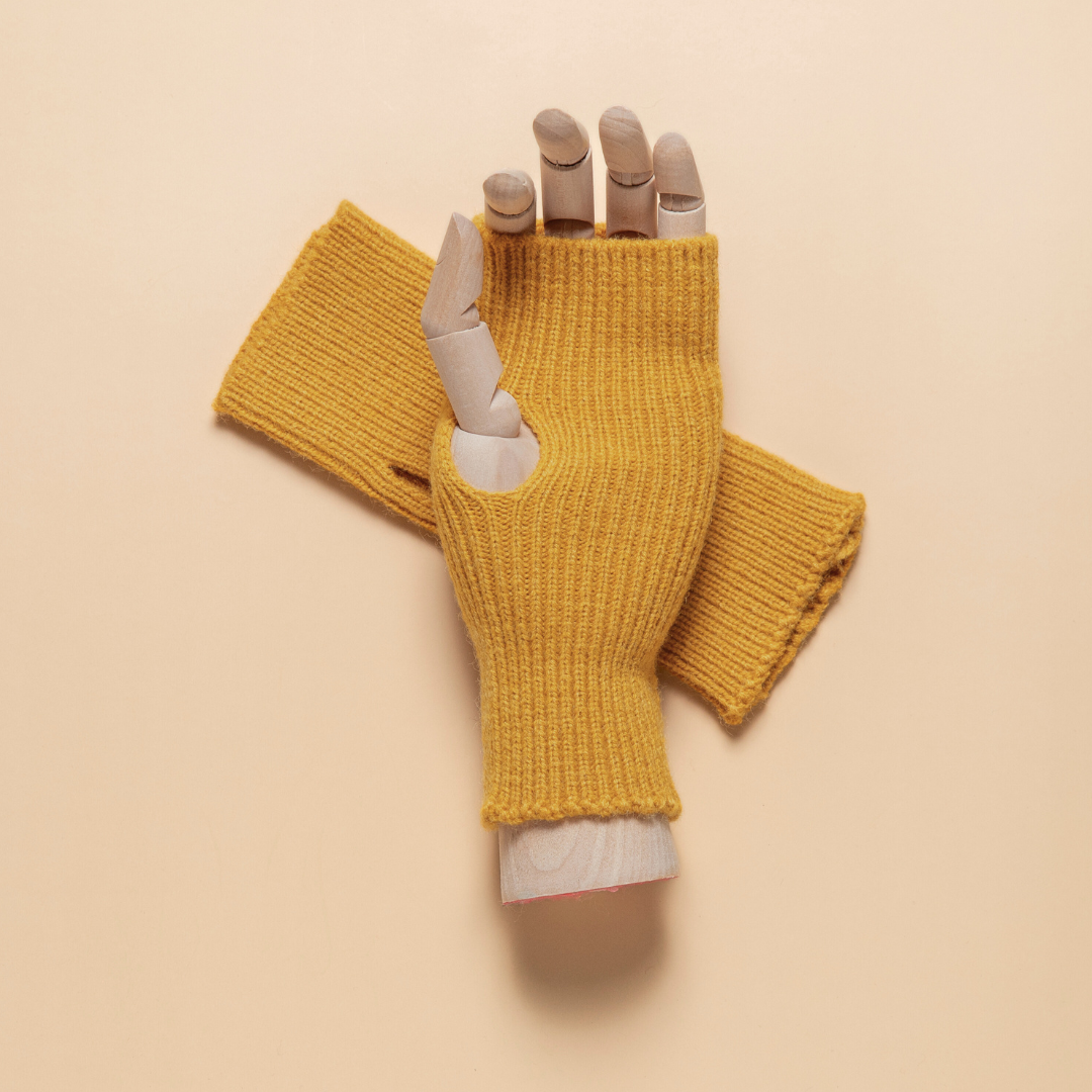 Ribbed Fingerless Gloves - MustardBrighten up your winter look with these ribbed fingerless gloves in cheerful mustard yellow. Made from soft, durable acrylic, these gloves provide the perfect balance of warmth and freedom for your fingers, making them ideal for texting, driving, or typing. The vibrant yellow hue adds a bold pop of colour to gloomy winter days, effortlessly elevating your cold-weather wardrobe. Functional and fashionable, these gloves are lightweight and versatile, offering a cosy accessory that combines practicality with playful charm. A winter essential for those who love to stand out!Material: 100% AcrylicMeasurement: 18 (L) x 7 (W) cm, thumb hole: 4 cm