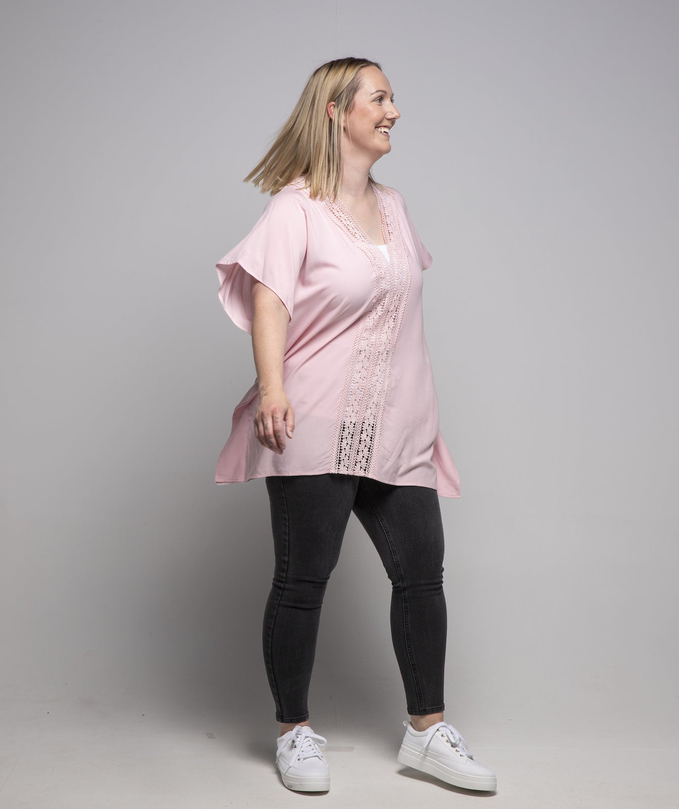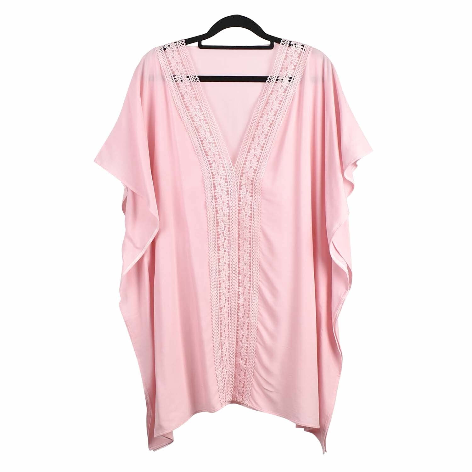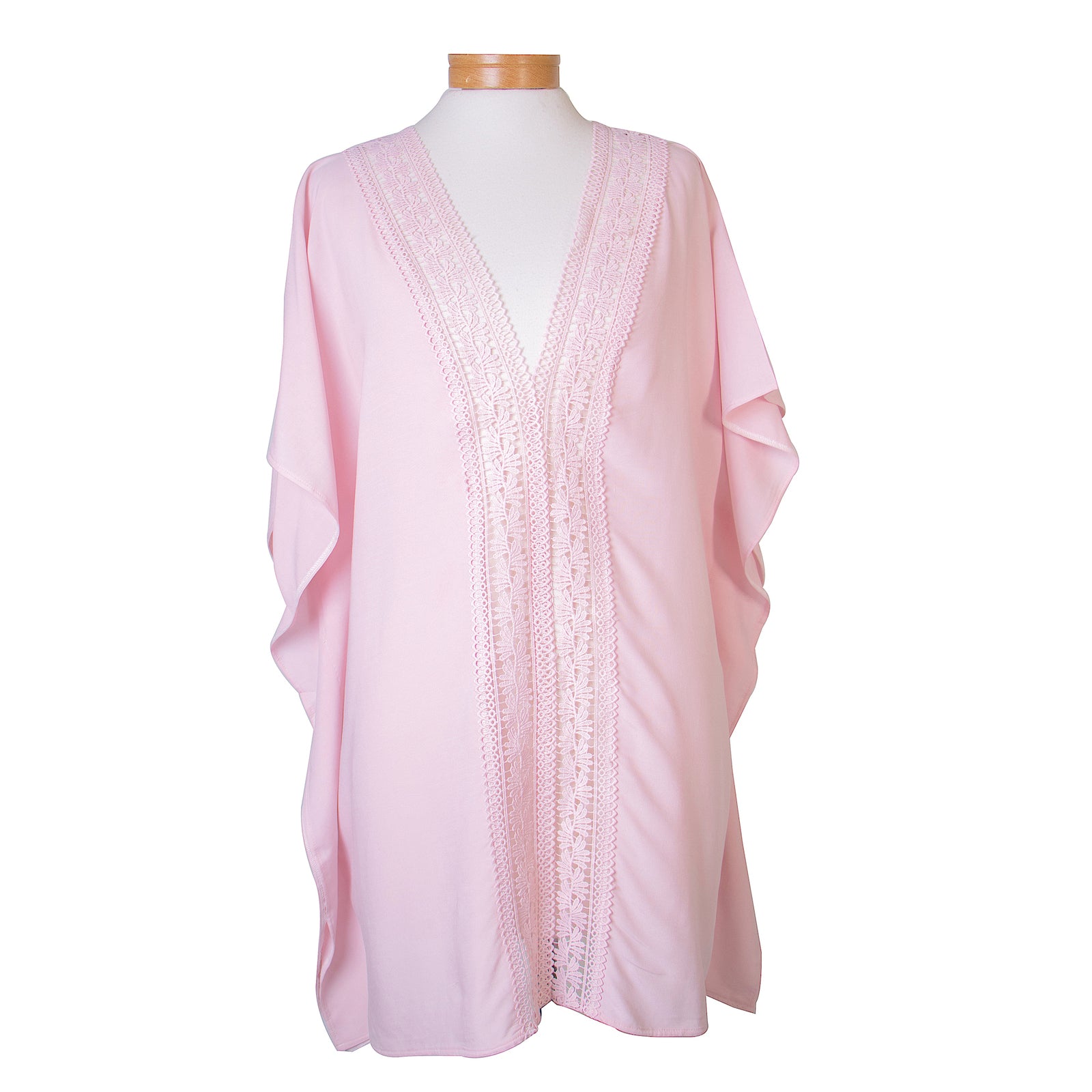 Kaftan is what summer is all about, something light, stylish and beautiful. Wear this one size fits most elegant plain baby pink cotton viscose blend kaftan with embroidery lace at the front to the beach, wear a camisole underneath, wear it as a dress, or wear it with summer pants. This cotton blend kaftan is a must as part of your spring summer outfit; it is versatile, lightweight and is a good cover up for the harsh Australia sun. This kaftan has a soft feel; it is loose and airy for those hot summer days.