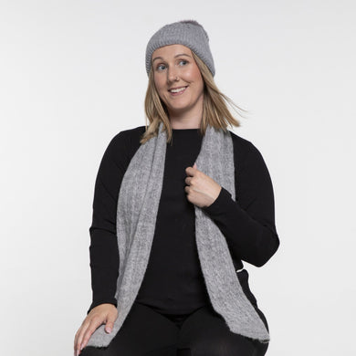 THSS2433: Grey: Twisted Rib Stitch Scarf