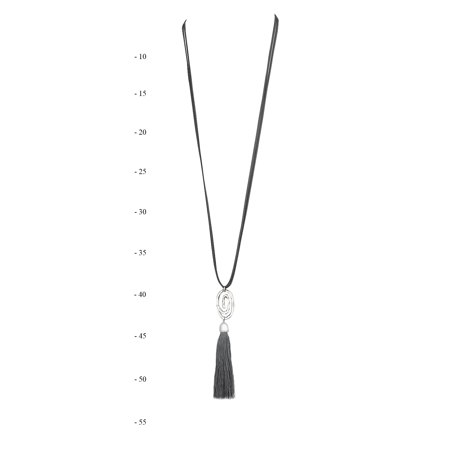 Elegant shiny Silver Circle of Life Pendant, paired with Grey Suede Leather necklace. The Pendant is decorated with Shiny Silky Grey thread tassels. This necklace is fabulous way to dress up any outfit, by adding dimension and contrast. It is also a great way to create a versatile wardrobe when you travel without adding the extra luggage weight. Necklaces make great gift item. _ RRP: $25 - $29.90. _ Pendant (Height-14.0 & Width- 2.0) _ Straight Length 57cm (Necklace & Pendant) _ Total Necklace (Length 84cm) _ Necklace Cord (Width 0.3cm)