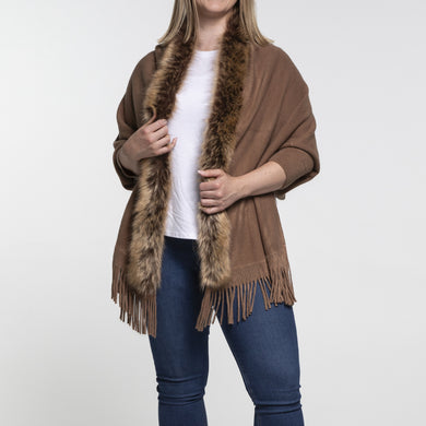 THSP1052: Brown: Faux Fur Plain Sleeve Cape Wrap