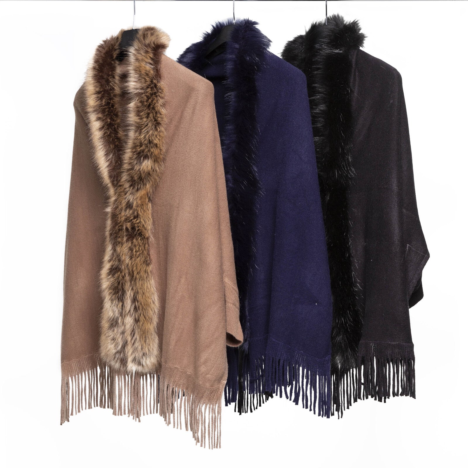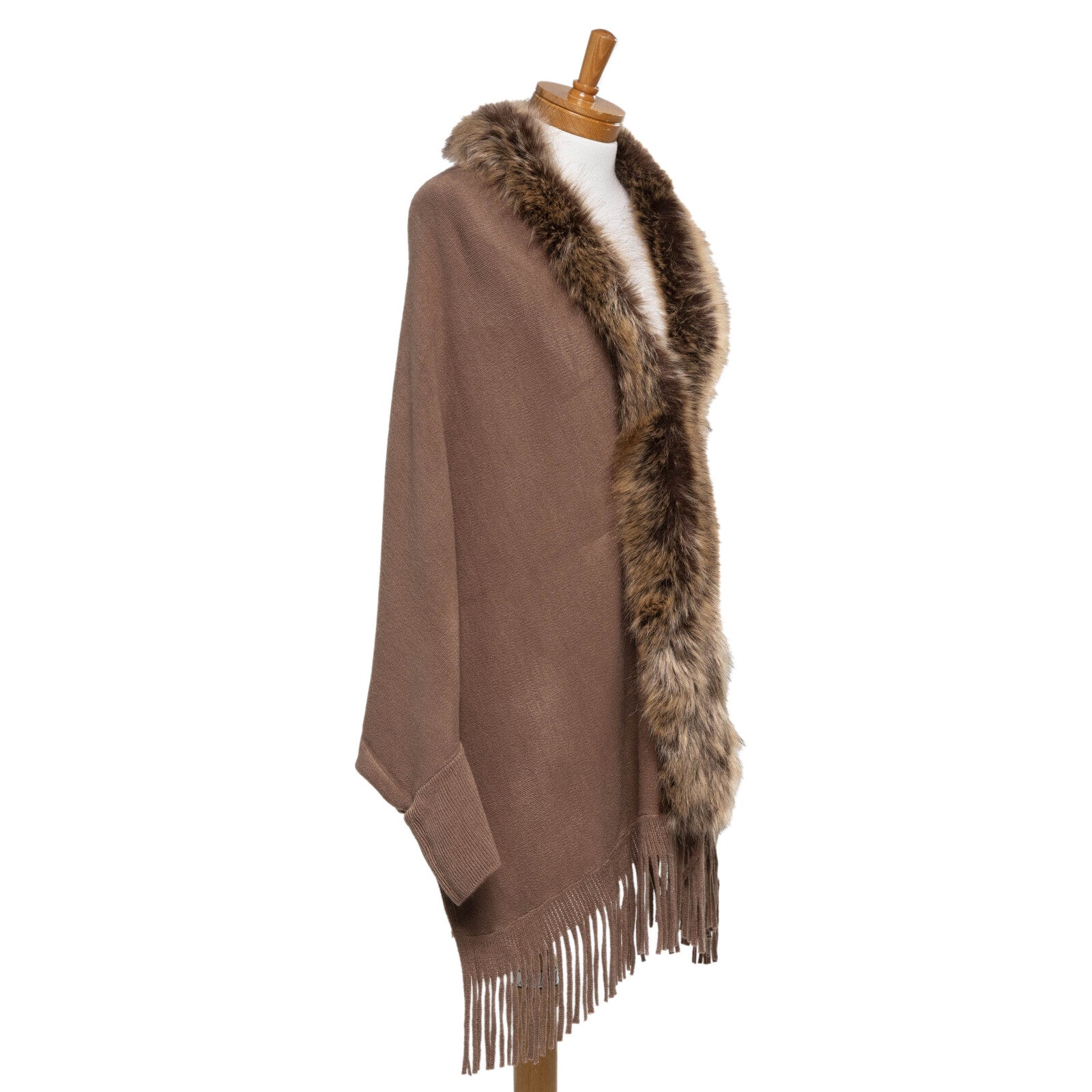Experience unparalleled elegance with our Faux Fur Plain Sleeve Cape Wrap in timeless Brown. Crafted from 100% Acrylic, this 180 x 40cm sleeve area and 70 x 100cm back accessory features sumptuous faux fur, has cuff sleeves, a secure buckle, and chic fringe detailing. Embrace the simplicity of a single solid colour, perfect for any occasion. Designed for the modern woman, this soft and luxurious cape wrap provides a snug fit with its one-size-fits-most styling. Elevate your winter wardrobe with this sophisticated and versatile accessory, offering both warmth and style in one irresistible package.