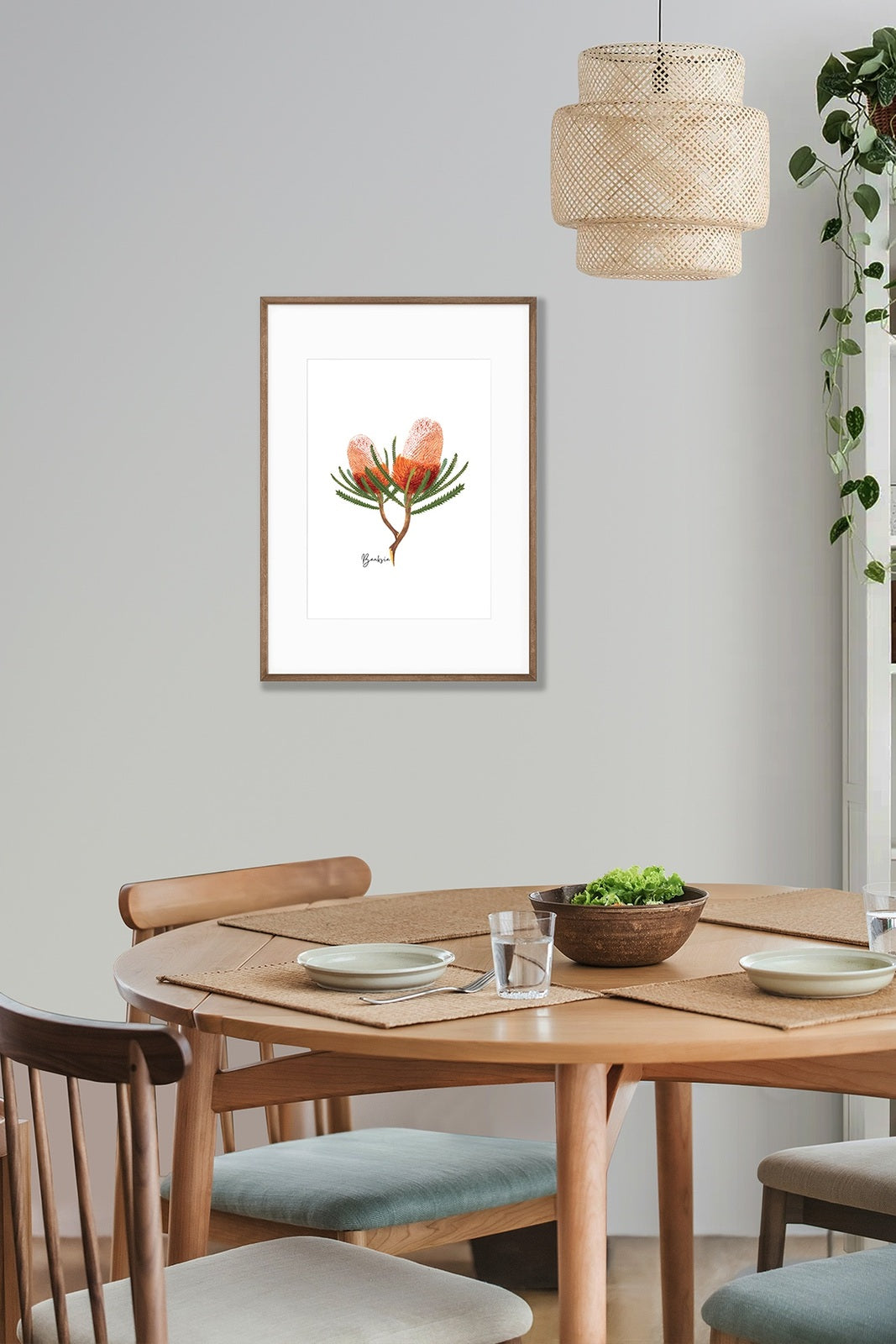 Our beautiful range of Native Australian Flora and Fauna Posters are designed in Australia. This beautiful colorful Banksia flower will brigten up any room, use whatever frame you please and it will highlight the image and make the floral print stand out. Mix and match with other poster designs to create your perfect look. It comes in a specially designed* packaging and it makes the perfect gift for that someone special. Check out our other design ranges. *It has information about the flower. Frames not included.