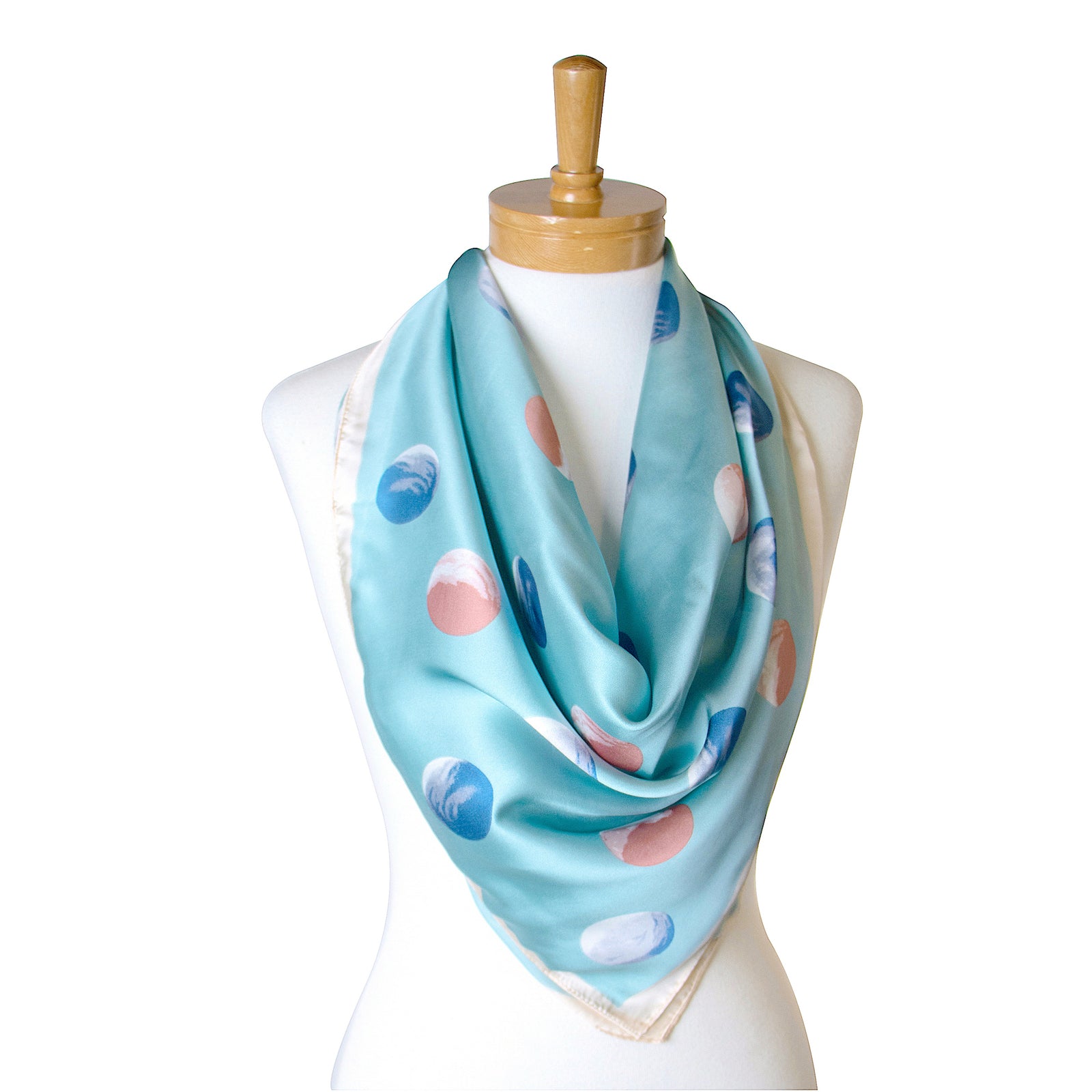 This beautiful aqua blue with multi colored polka dot printed on silk feeling polyester scarf is perfect to compliment any outfit. This scarf has a soft texture and feel ever so soft against the neck. Look stylish in all seasons to jazz up any outfits with elegant and class.