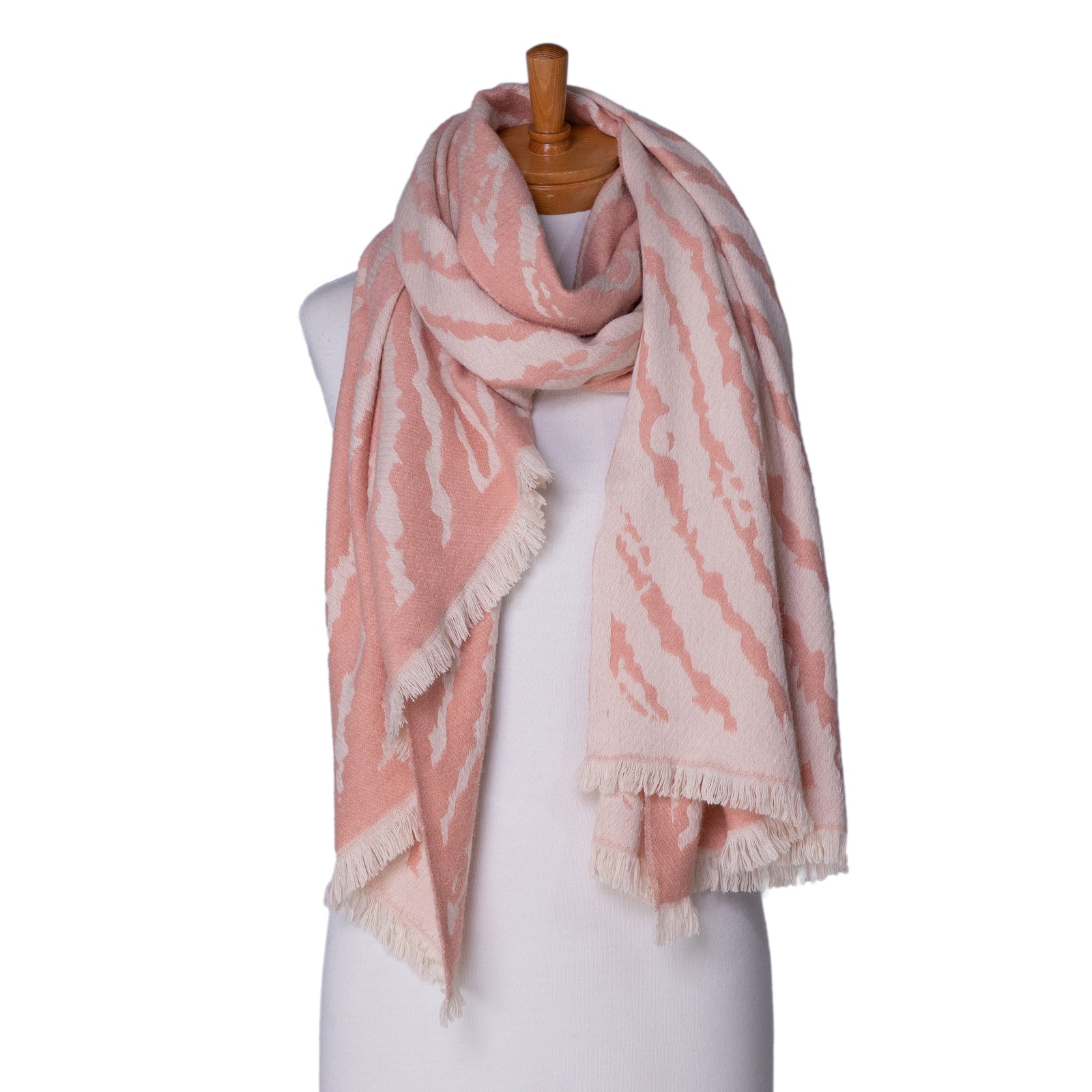 Beautiful soft pink wool acrylic blend scarf with zebra print design will surely brighten any outfit and keep you warm. This winter scarf is classy and elegant, the soft texture of the scarf feel ever so soft againts the neck and it can double up as a wrap. A must have scarf to be kept in the bag for everyday use.