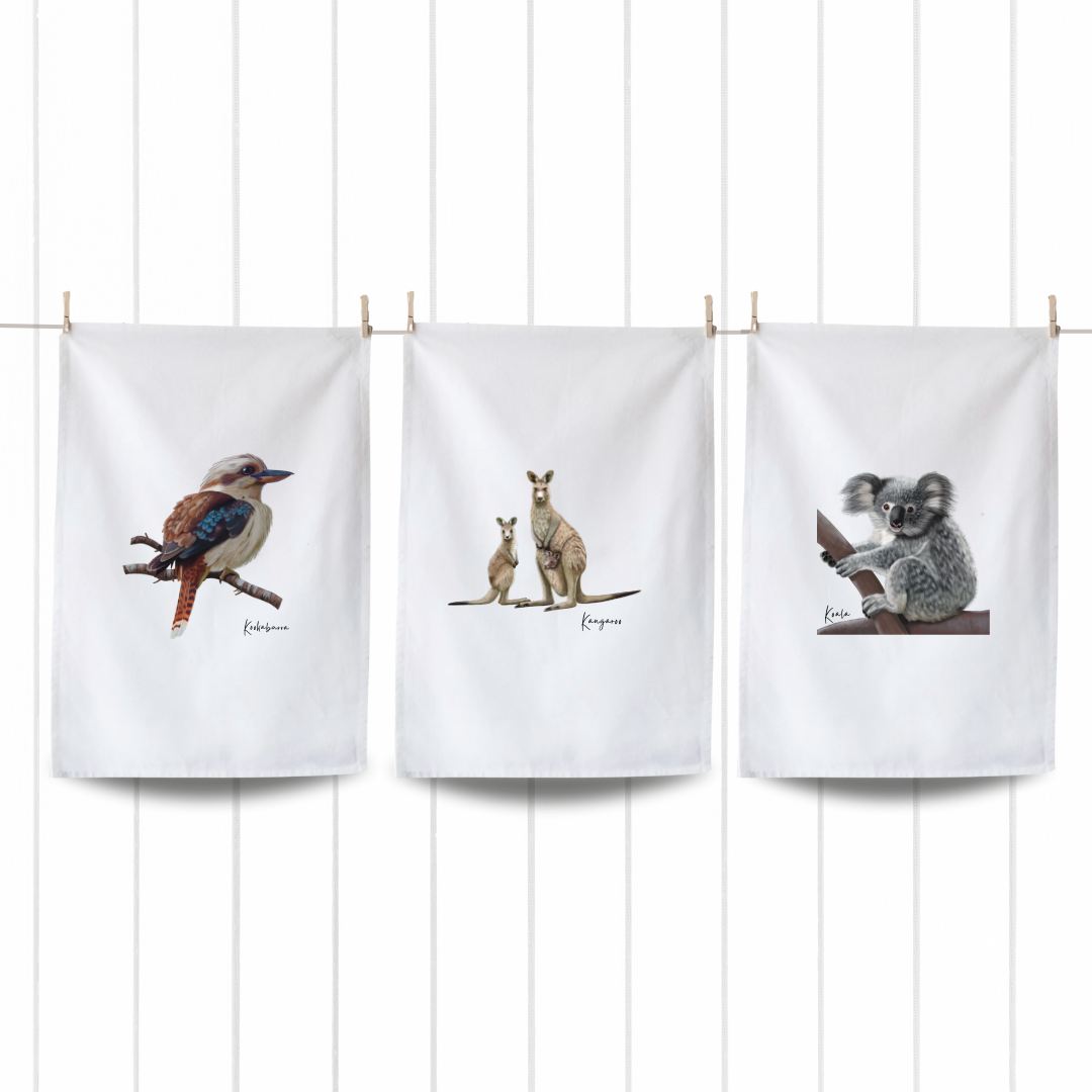 Perfect for gifting on any occasion—Christmas, birthdays, housewarmings, or even as a quirky Father’s Day surprise (better than socks)— this set is a joyful way to share Australia's beloved wildlife Australia’s in a fun and functional way. Whether you’re gifting to a wildlife enthusiast or just want to add some Aussie charm to your kitchen, these tea towels are sure to bring a smile to anyone's face.
