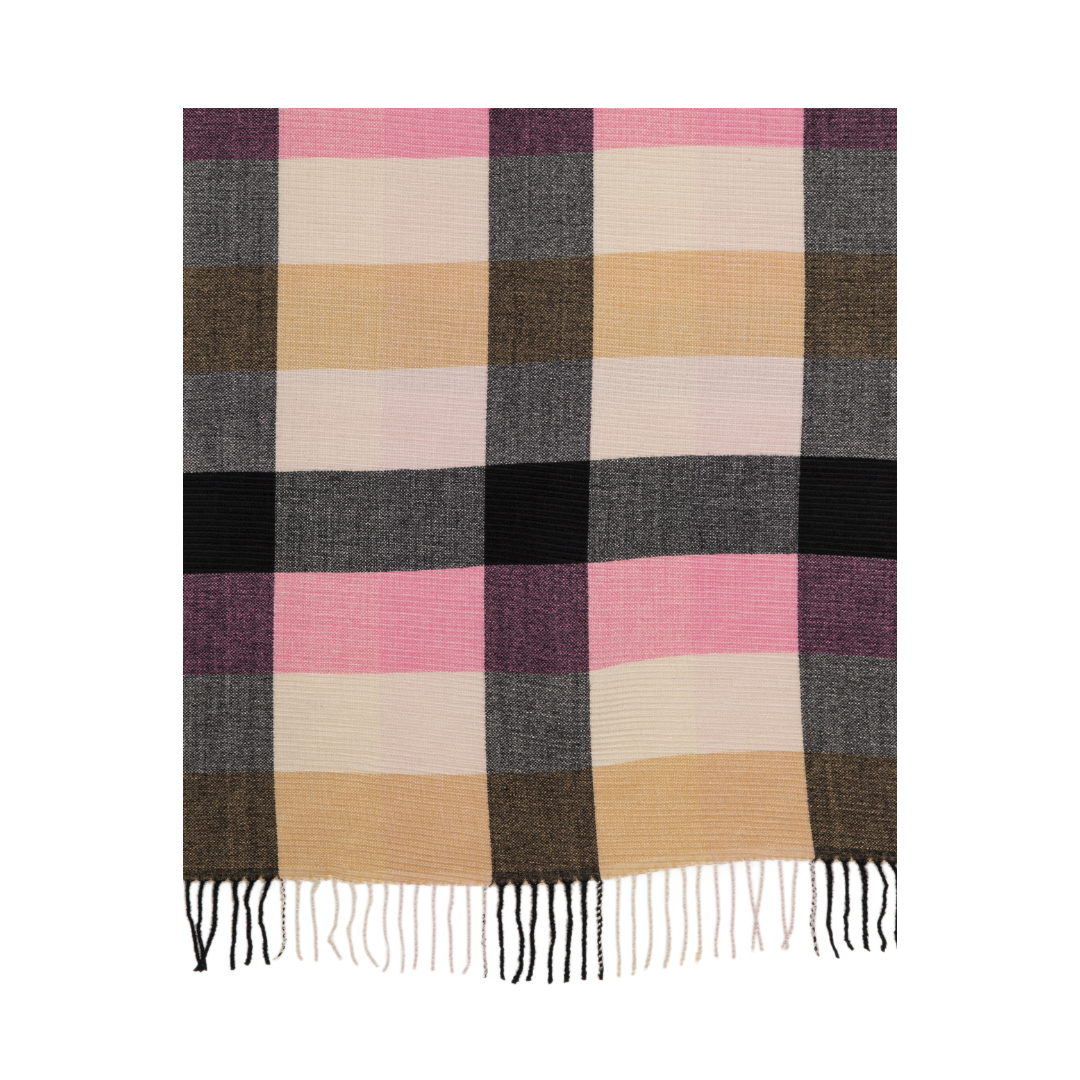 Crimped Plaid Scarf - Pink The Crimped Pink and Beige Plaid Scarf features a classic checkered pattern in subtle tones of pink, beige, black, and cream, effortlessly blending warmth and sophistication. Crafted from premium-quality material, it offers exceptional softness and comfort, making it ideal for chilly mornings, evening strolls, or cosy nights out. The stylish fringe detailing adds a playful touch, while the generous size makes it versatile to wear as a shawl, wrap, or scarf, perfect for layering over coats, sweaters, or dresses. Whether you're heading to the office, catching up with friends, or attending a special event, this scarf is an essential accessory for staying warm and fashionable. Unique Features: Premium soft ribbed weave for ultimate comfort and warmth Classic checkered design in elegant pink and beige tones Stylish fringed ends for a timeless finish Generous size for versatile styling D wear as a scarf, shawl, or wrap Perfect for winter outings, casual wear, or evening events Thoughtful gift idea for birthdays, Christmas, or MotherOs Day Material: 100% Viscose Measurement: 180 (L) x 70 (W) OR 200 (L) x 70 (W) (incl. fringe) cm