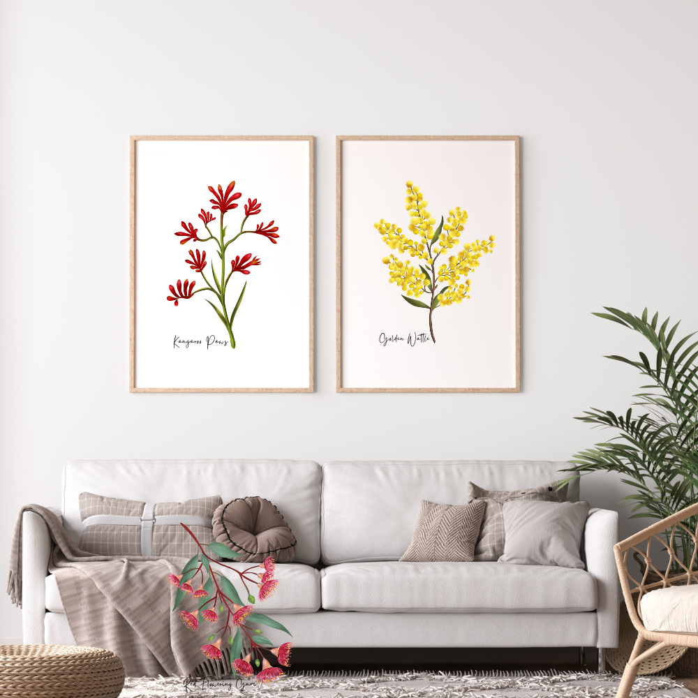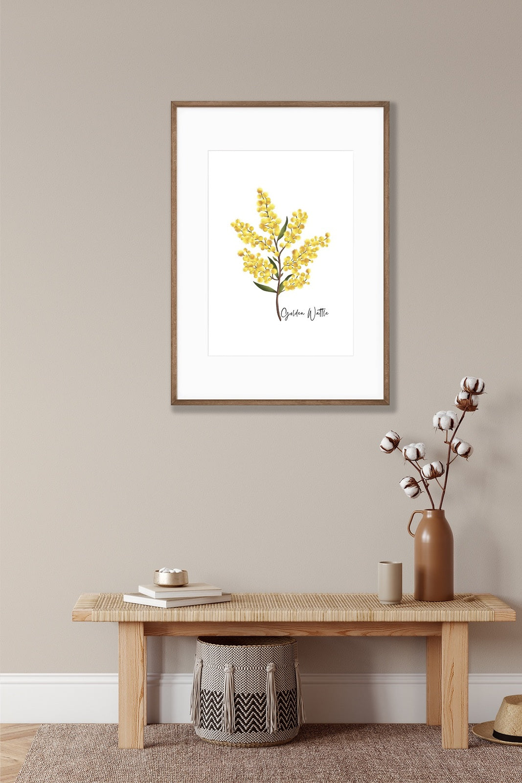 Our beautiful range of Native Australian Flora and Fauna Posters are designed in Australia. This beautiful colorful Golden Wattle flower will brigten up any room, use whatever frame you please and it will highlight the image and make the floral print stand out. Mix and match with other poster designs to create your perfect look. It comes in a specially designed* packaging and it makes the perfect gift for that someone special. Check out our other design ranges. *It has information about the flower. Frames not included.